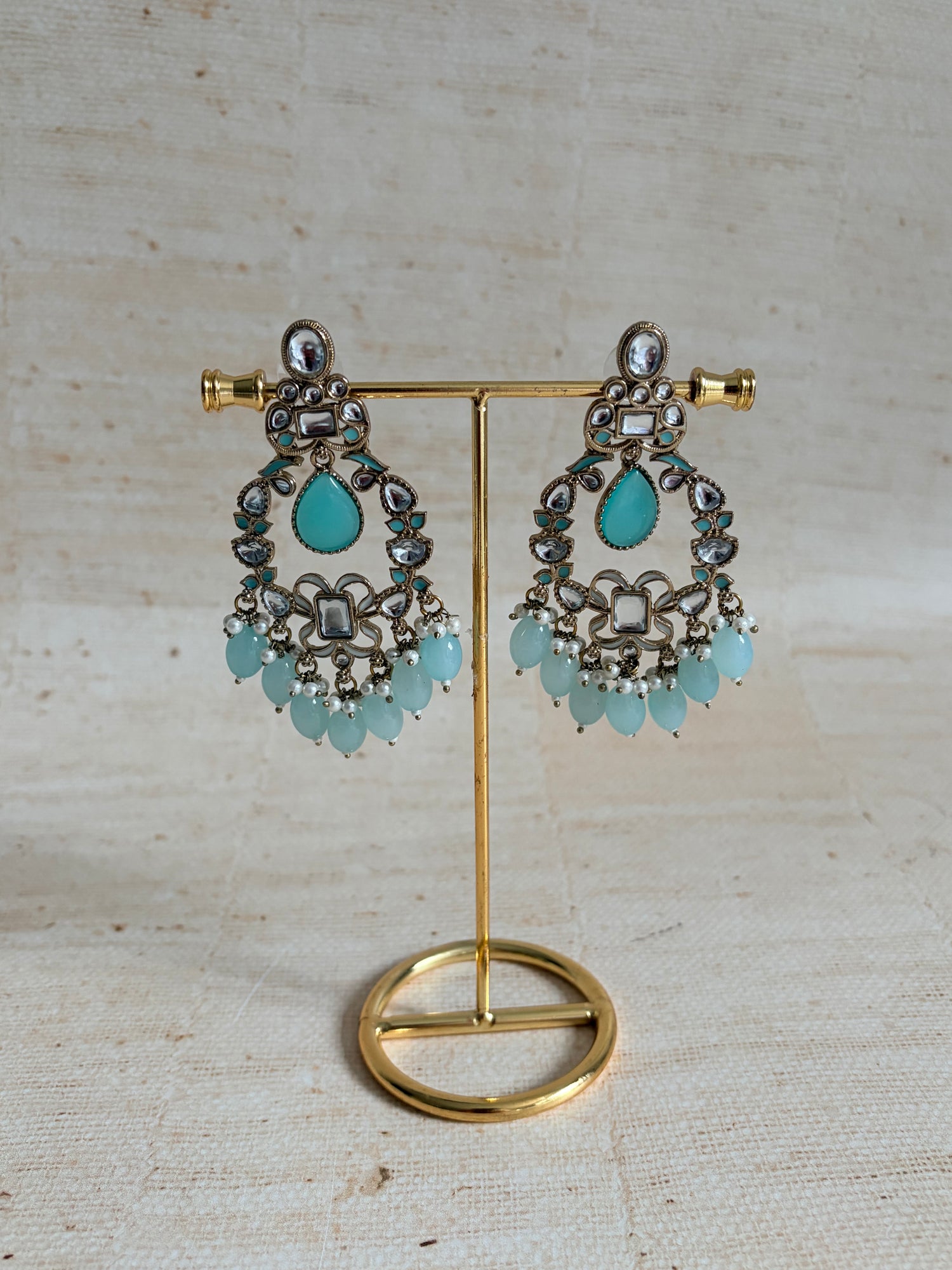 Anaya Kundan Pearl Antique Earrings (ST1059) (Blue)