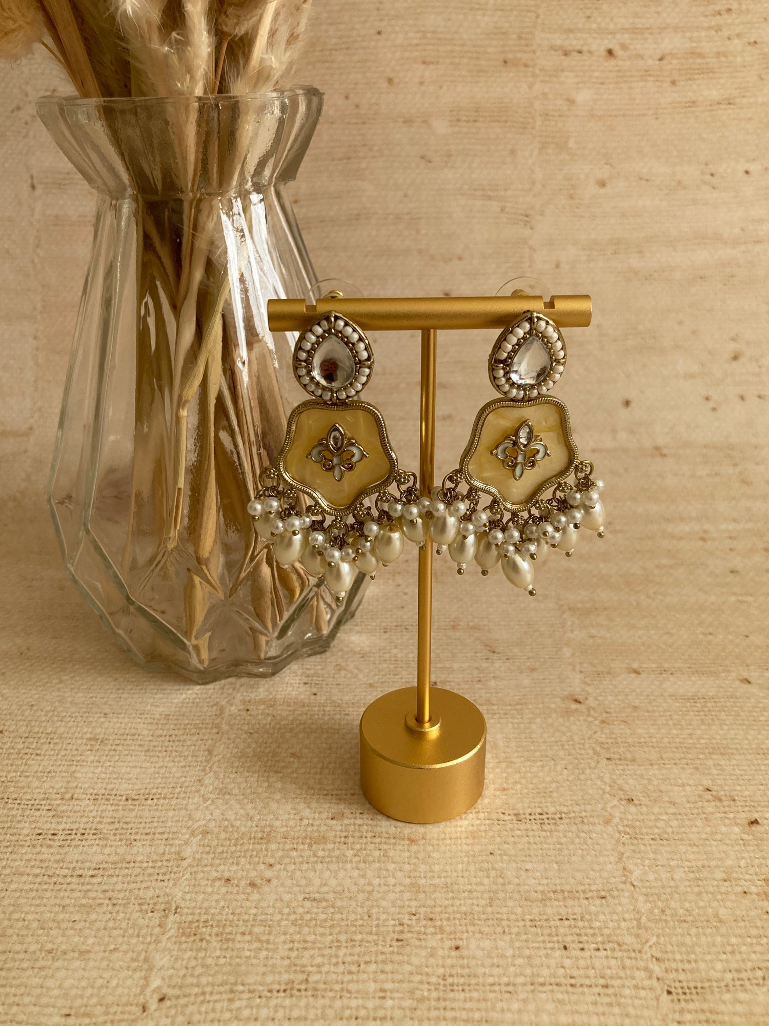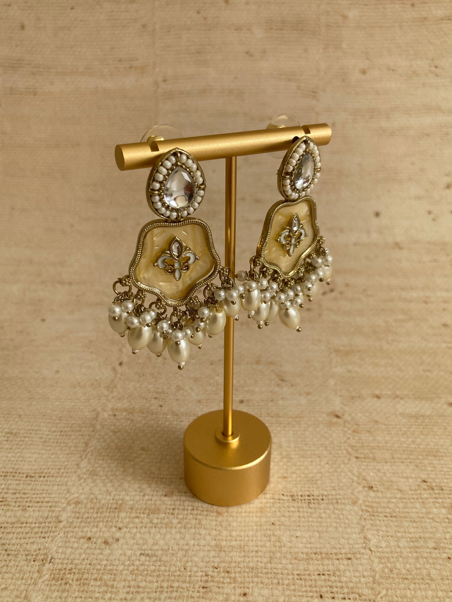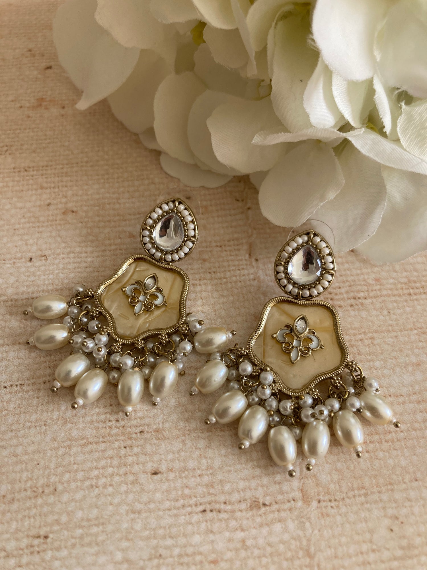 Antique Gold Mother Of Pearl Earrings (ST1081) (White)