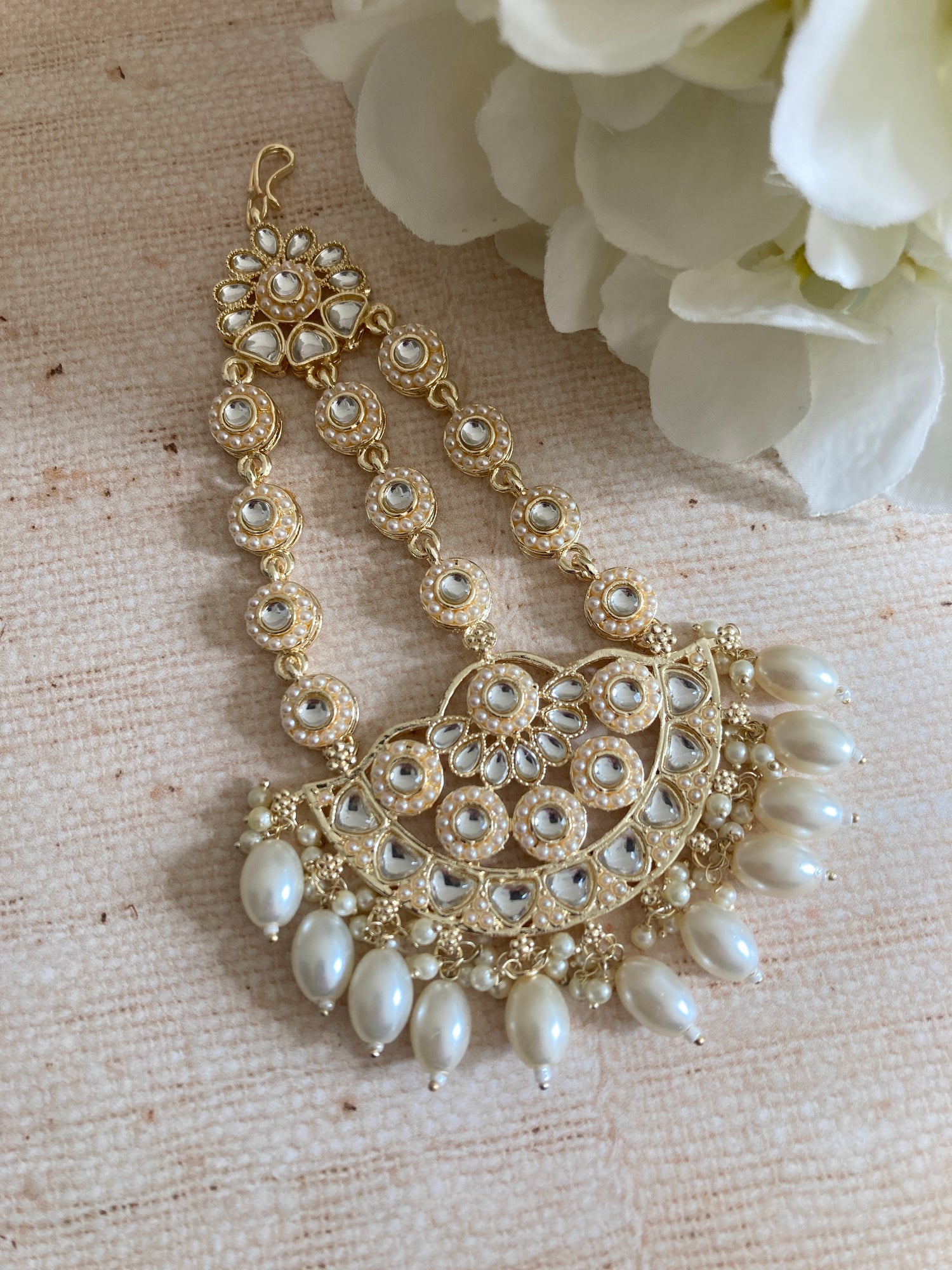 ⬥This stunning gold passa is a must have accessory for any special occasion. The intricate design embellished with pearls exudes elegance and adds a touch of luxury to your look.