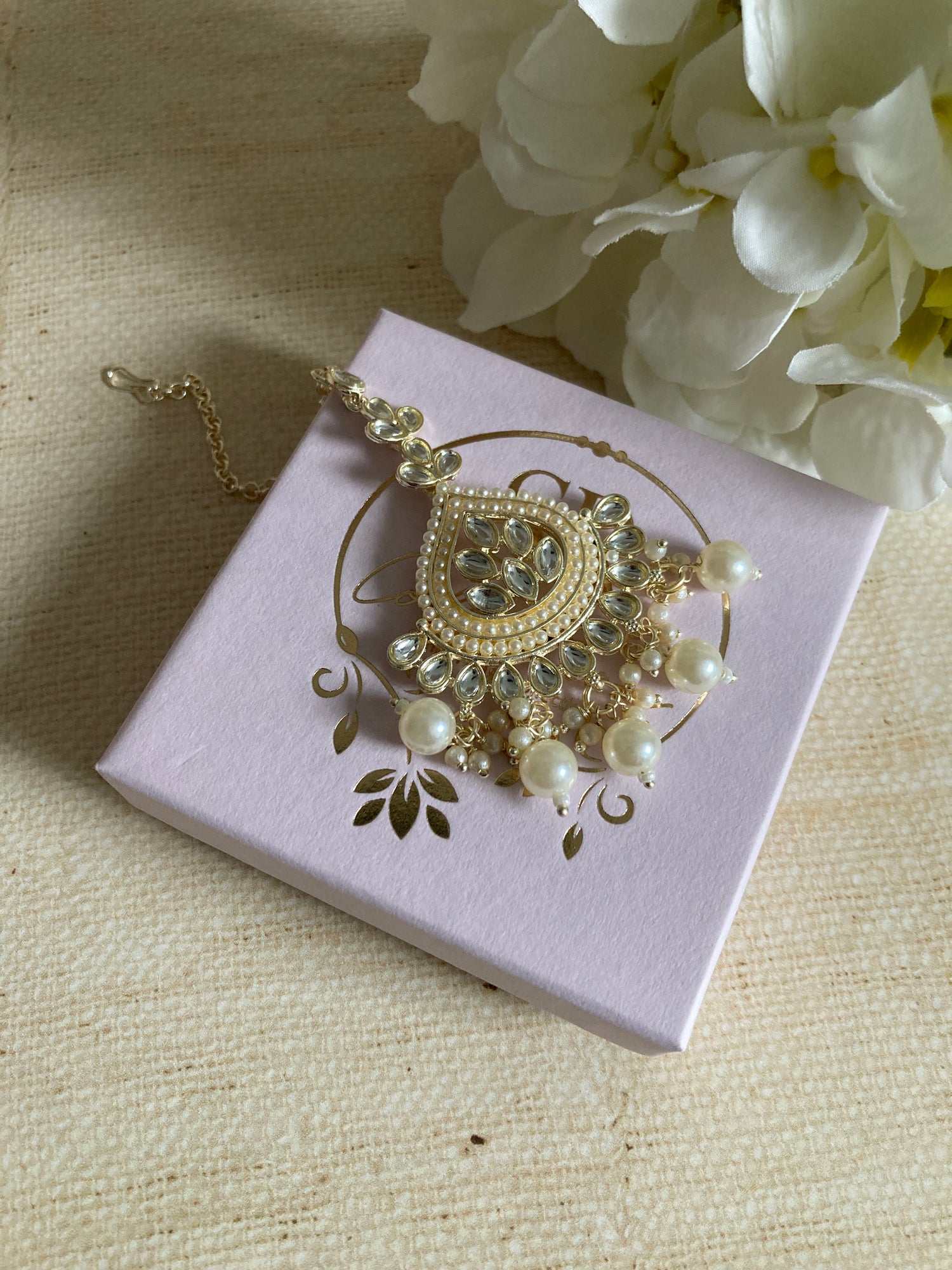 Gold Plated Kundan And Pearl Tikka (ST1015)