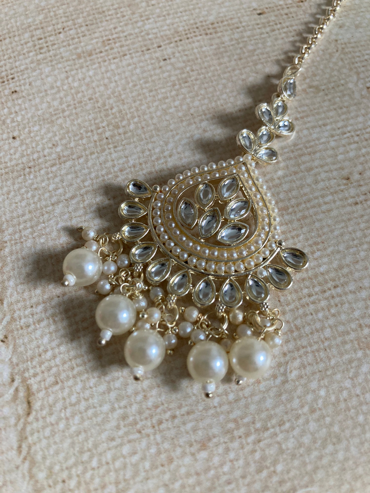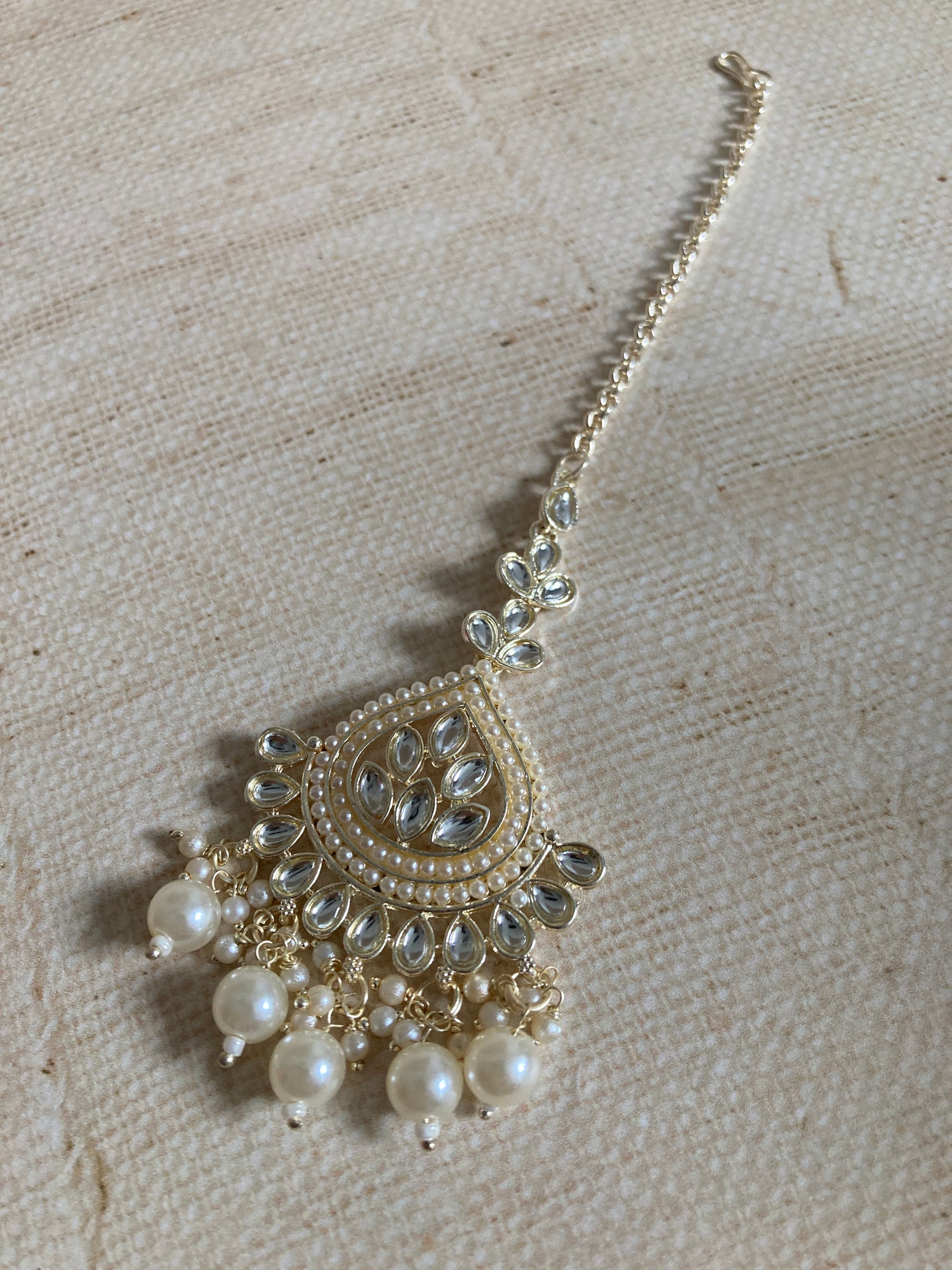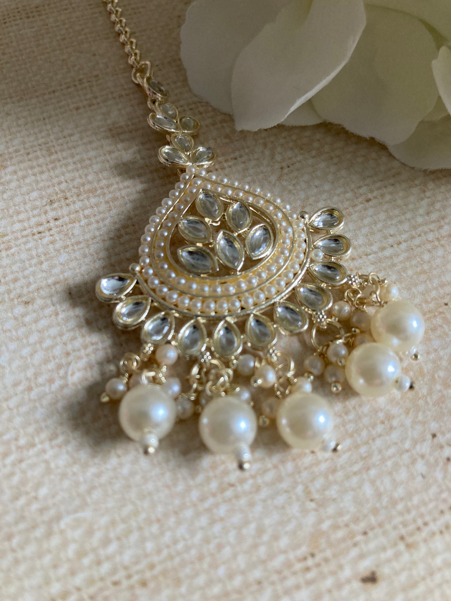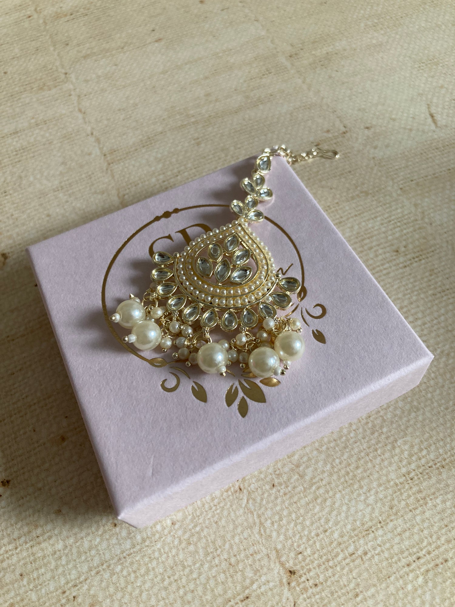 ⬥Our tikka is a stylish and glamorous addition to any outfit. Expertly crafted with gold-plated metal and pearls, this tikka makes a statement with its sophisticated and exquisite design.
