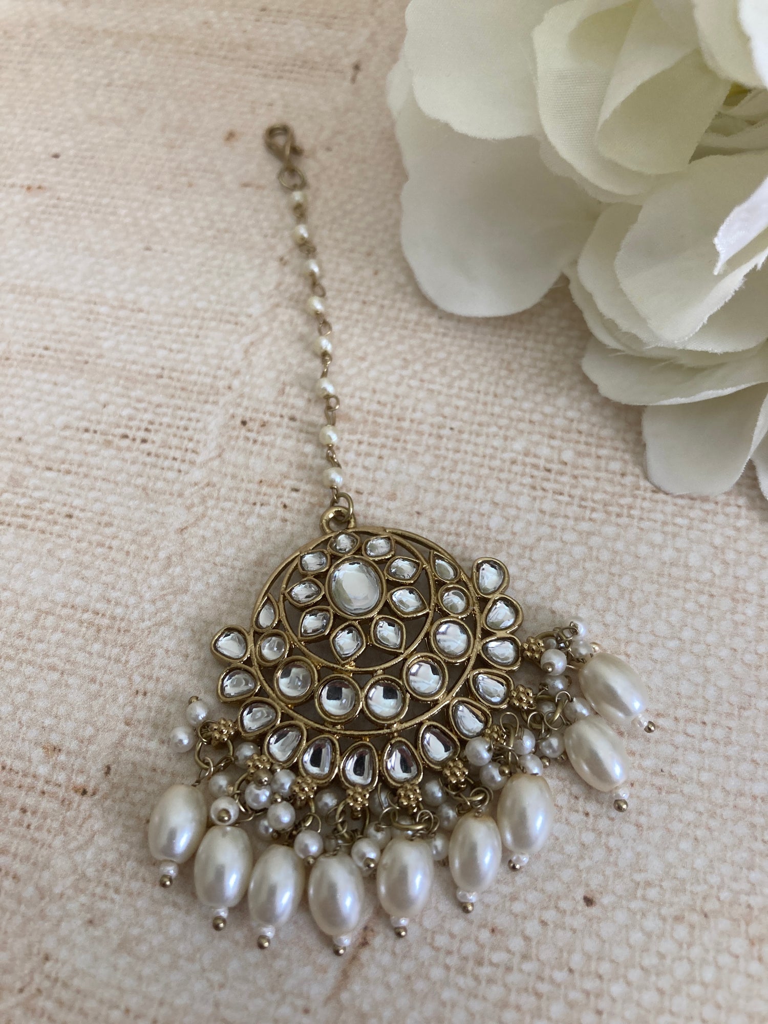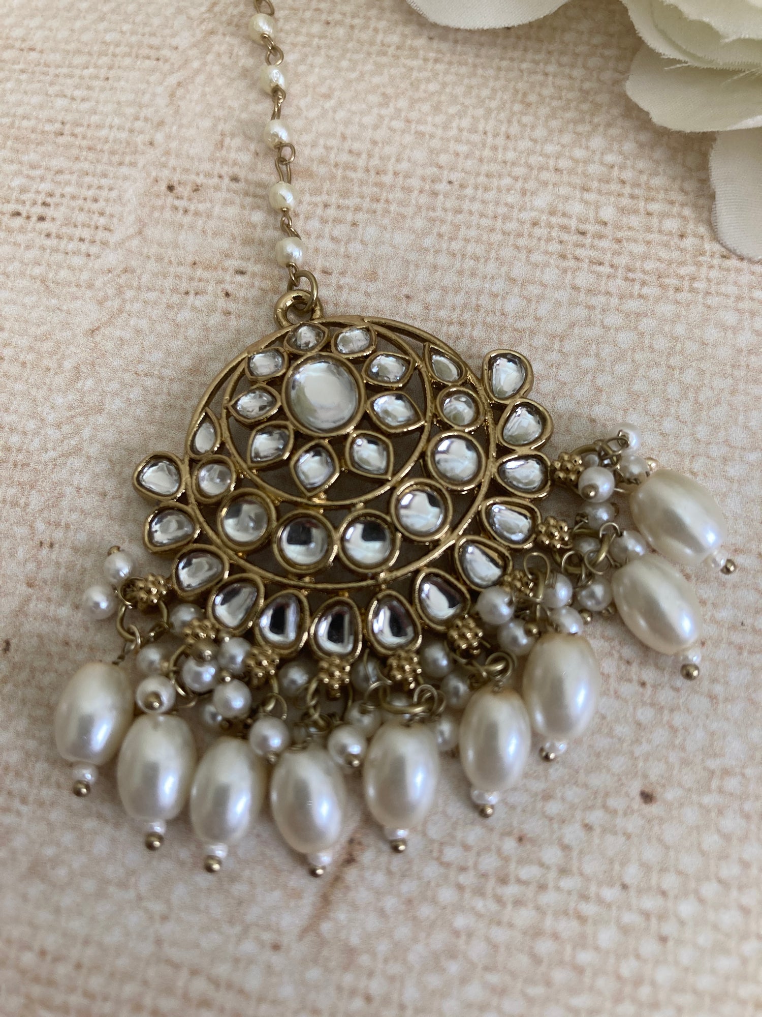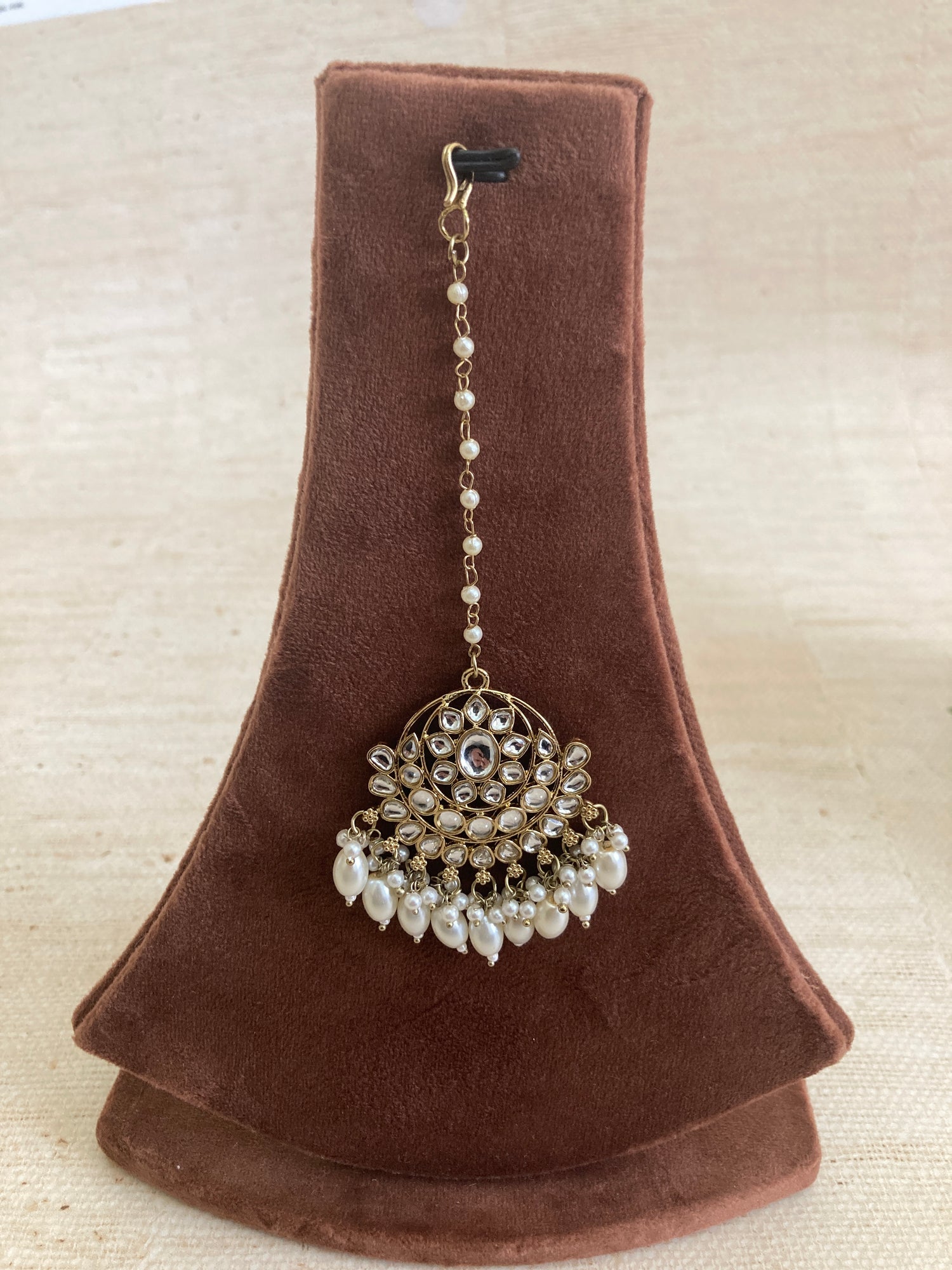 Antique Gold Plated Kundan And Pearl Tikka (ST978)