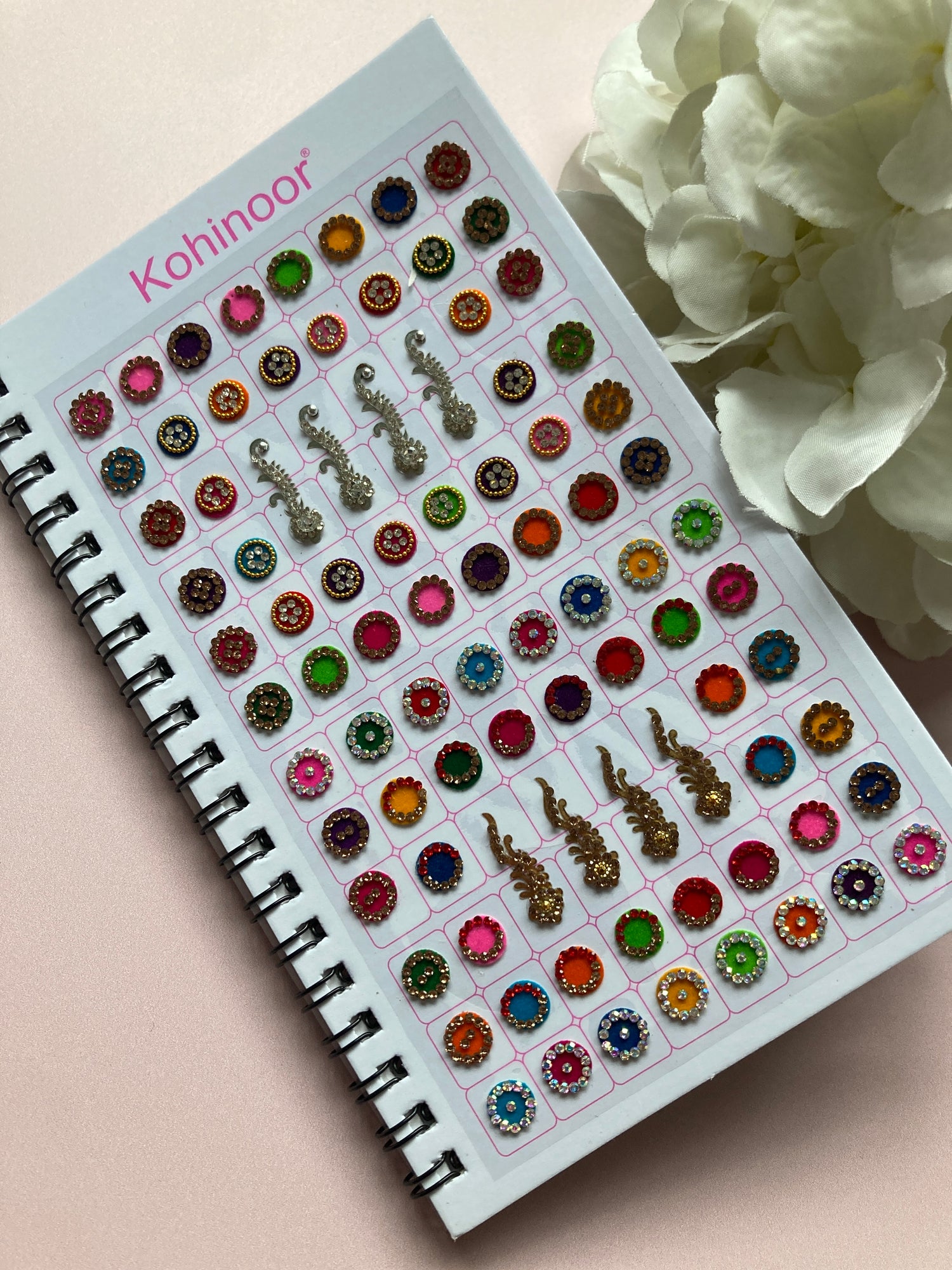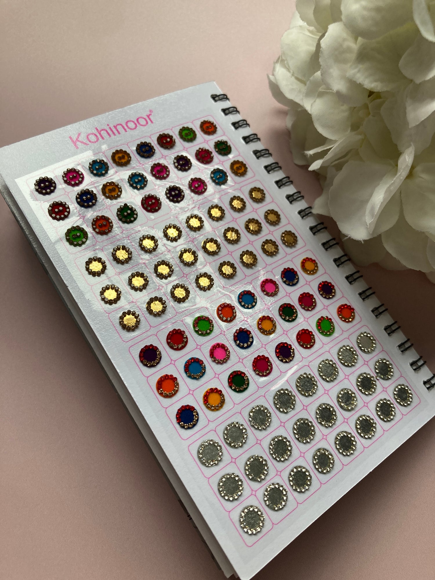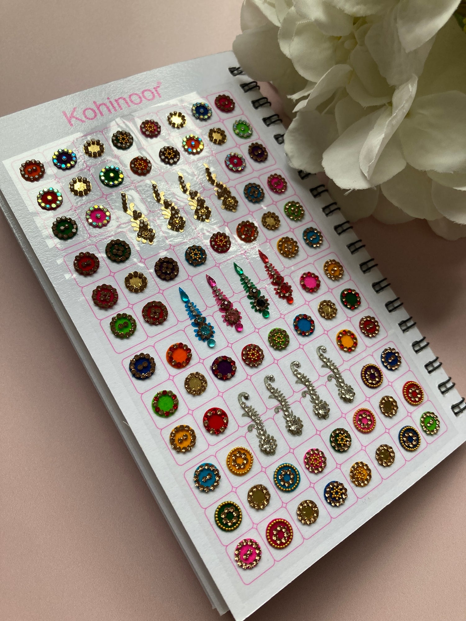 ⬥Available in a variety of designs and stunning colours. Silver and gold bindis are available in this book.