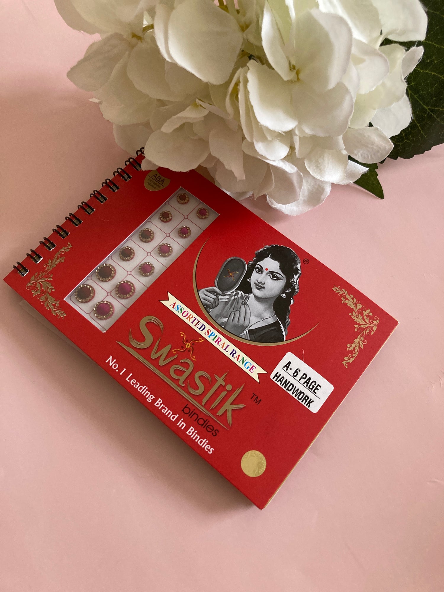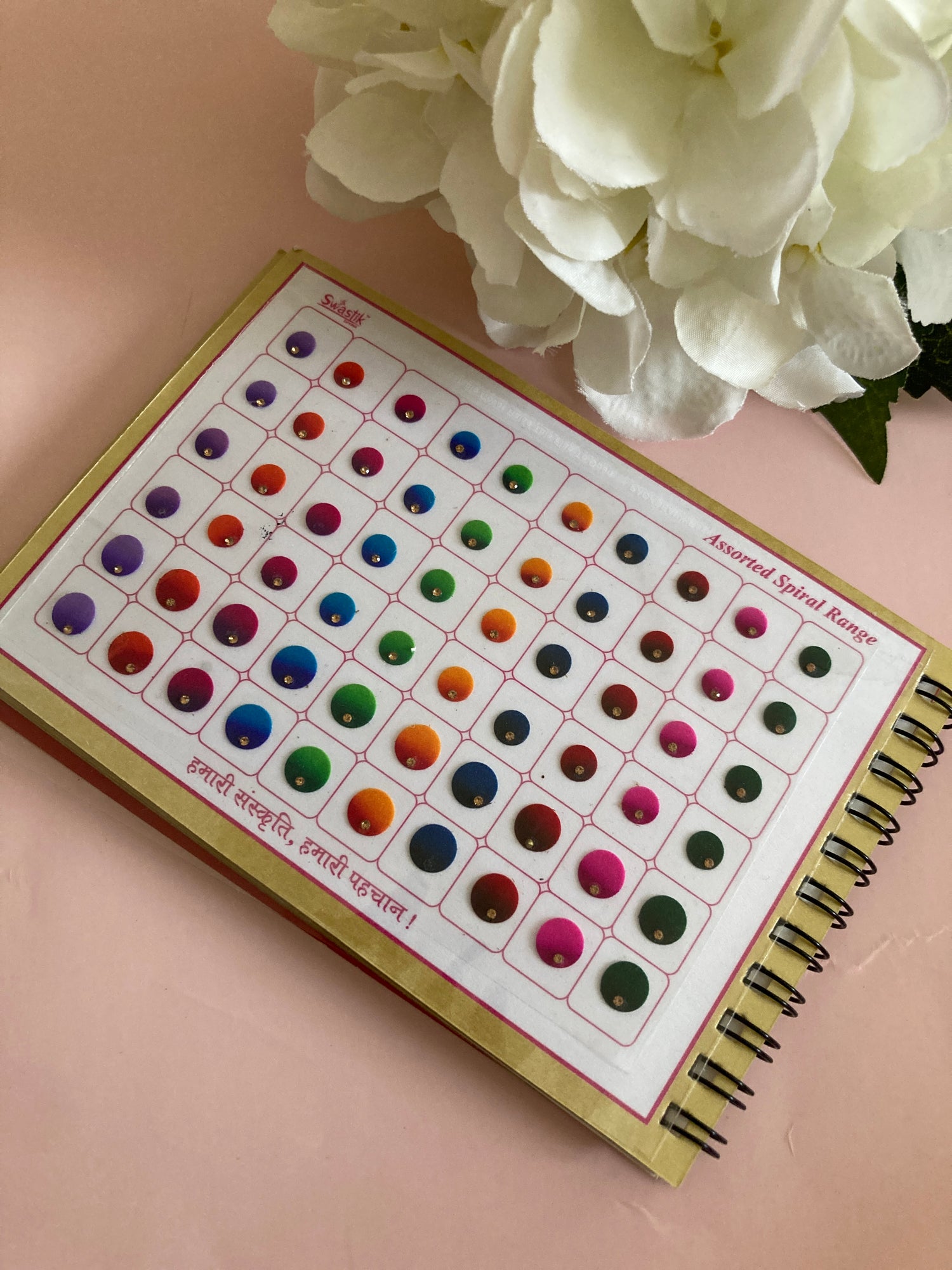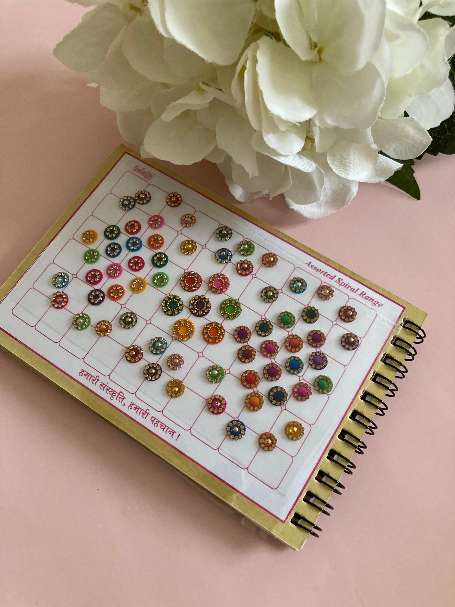 ⬥Assorted mixed designs and colours round 6 page bindi booklet. This book has a selection of beautiful pearl bindis.
