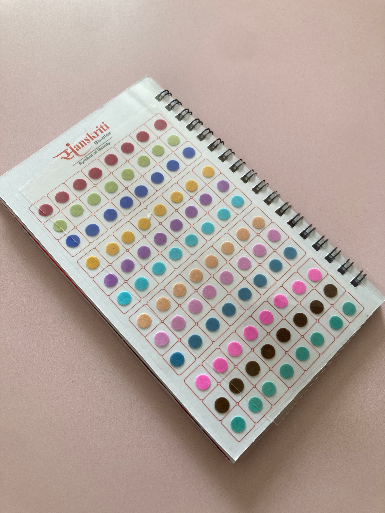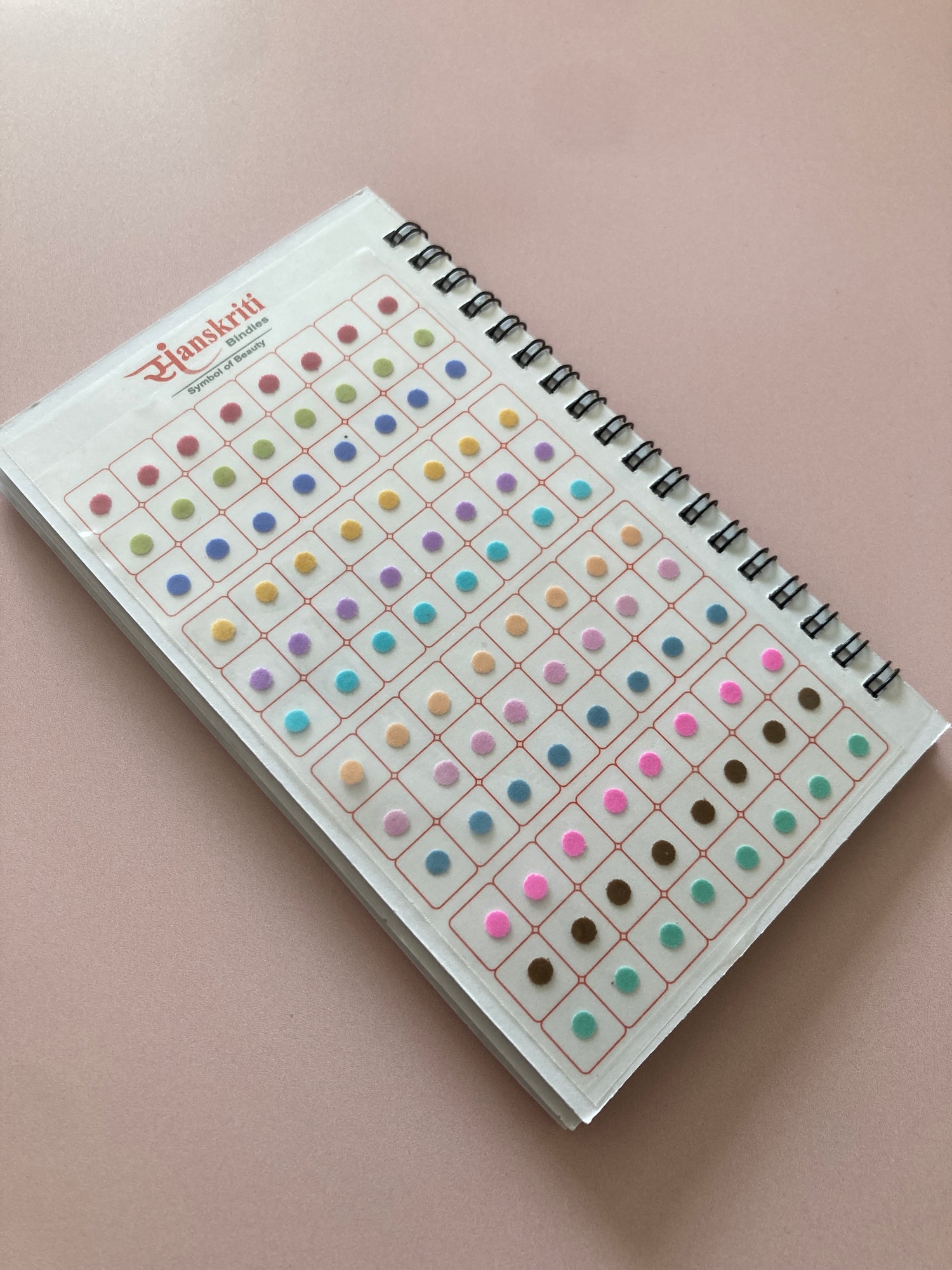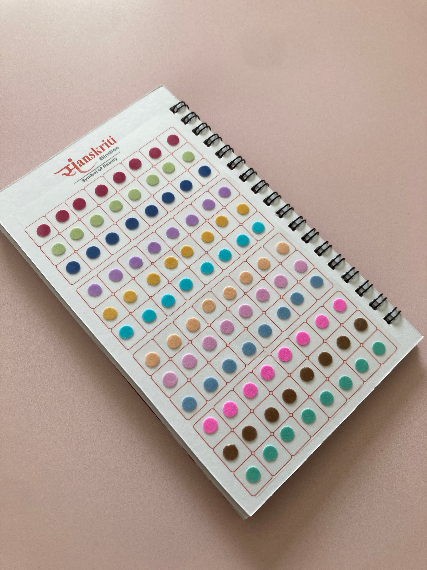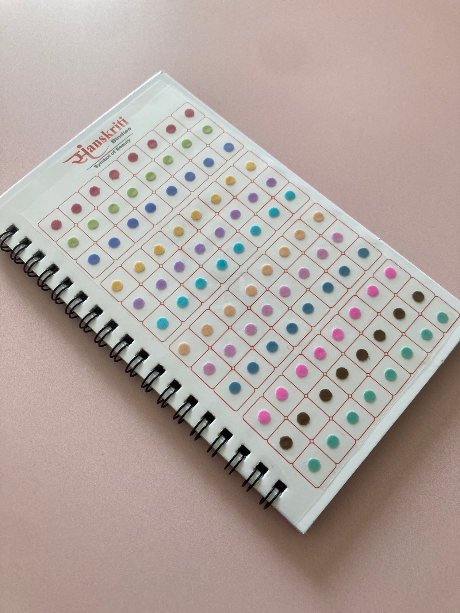 ⬥Assorted sizes round colourful pastel 960 bindi 10 page booklet.