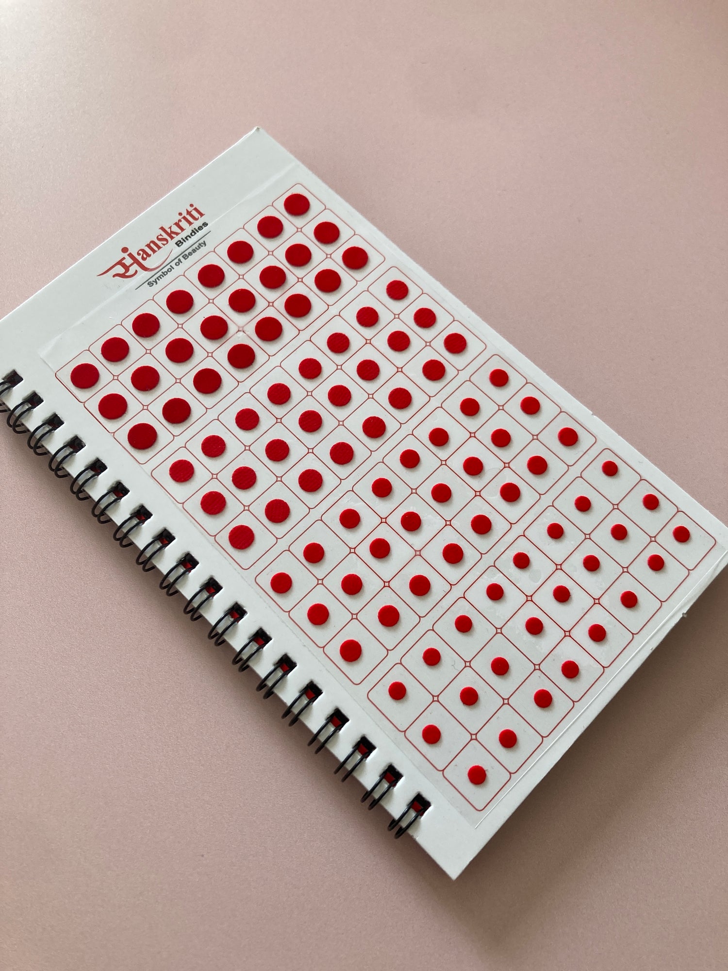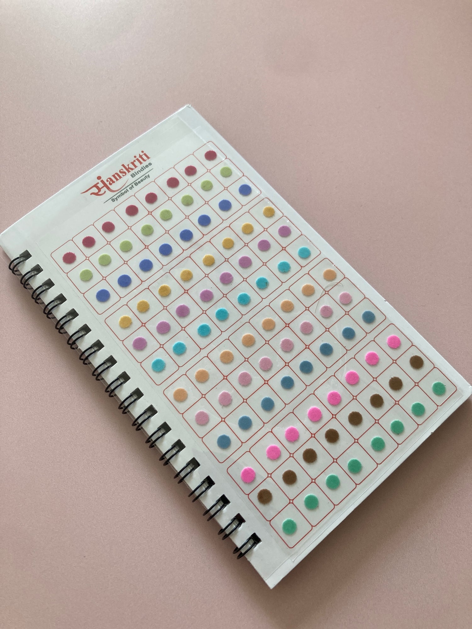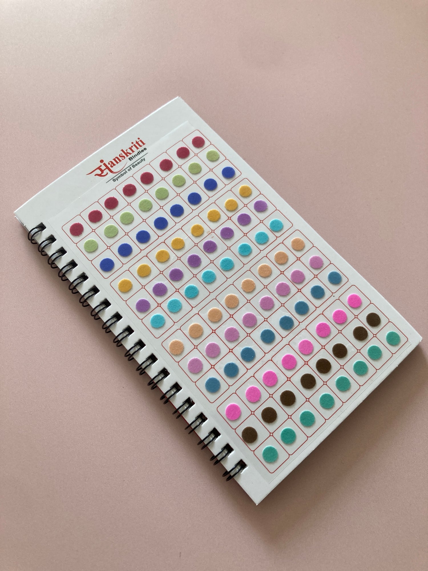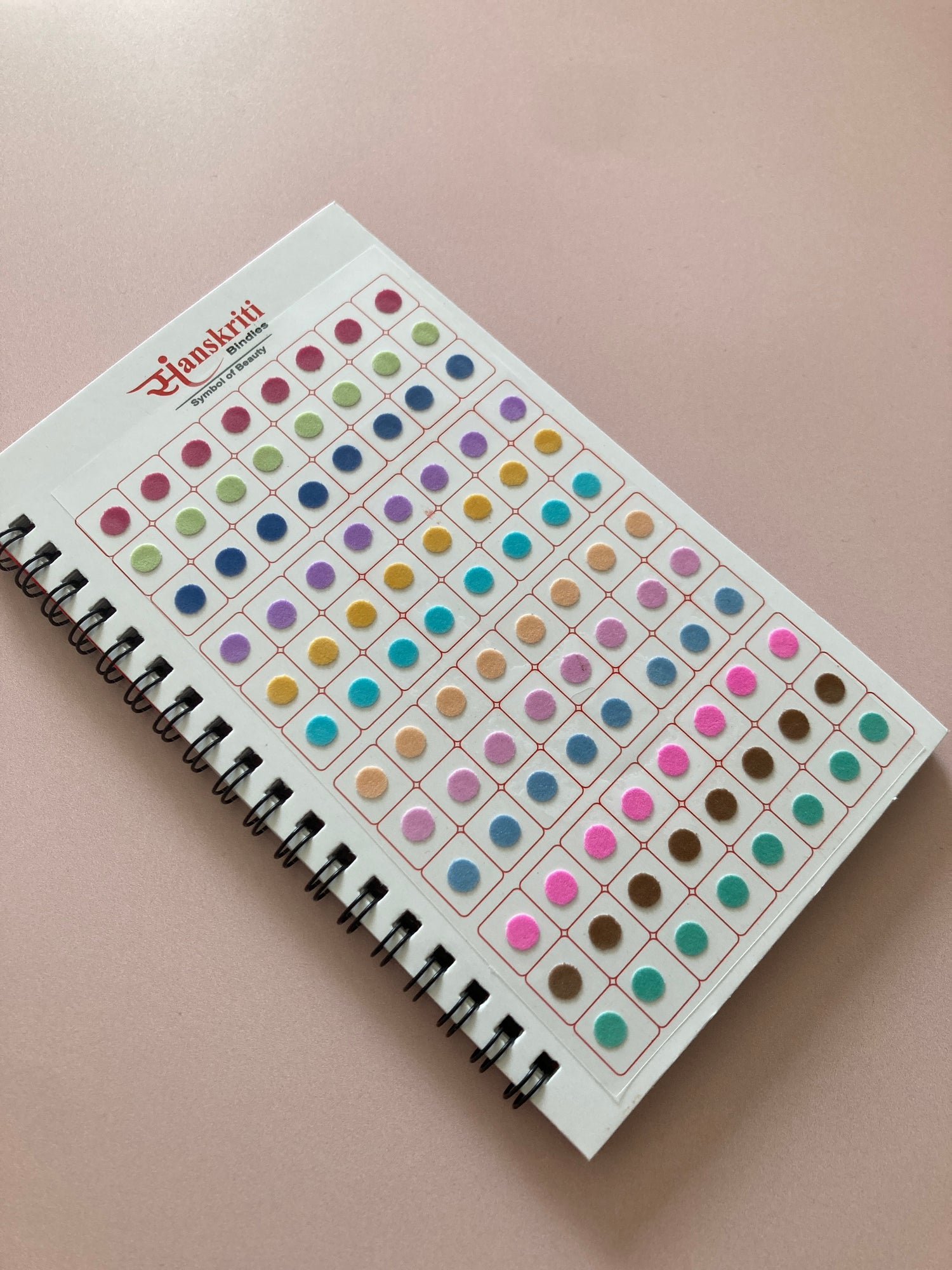 ⬥Assorted sizes round colourful pastel 960 bindi 10 page booklet.