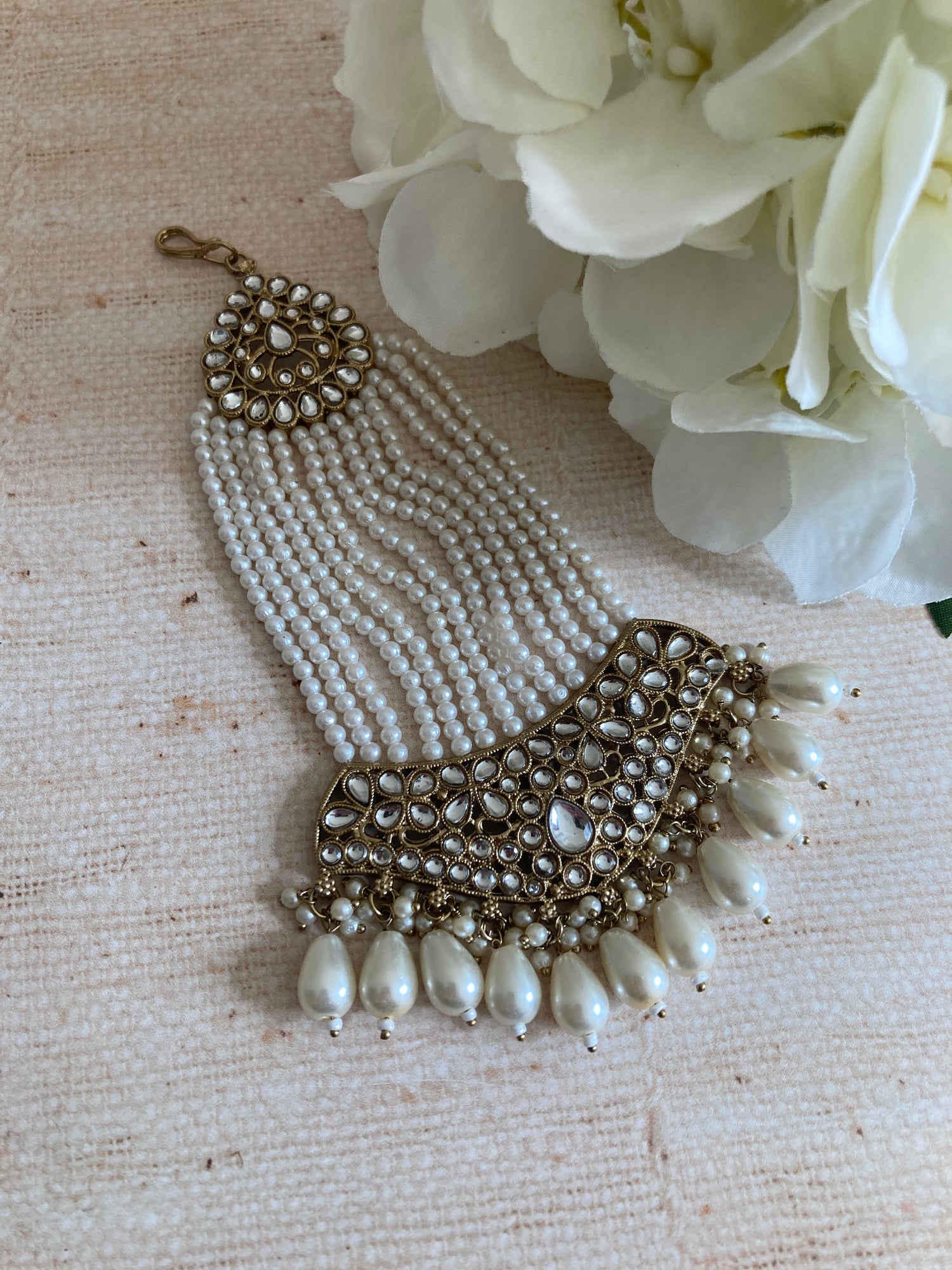 Rania Antique Gold Pearl Passa/Jhumar (ST1033)