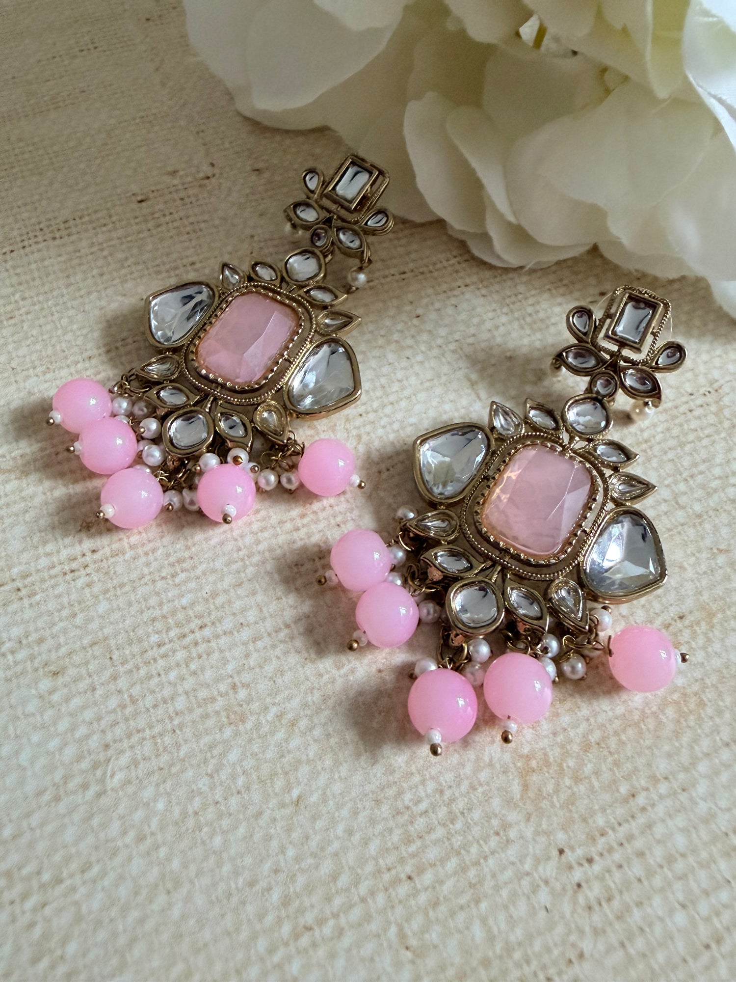 Sia Pink Kundan Pearl Earrings (ST1062)