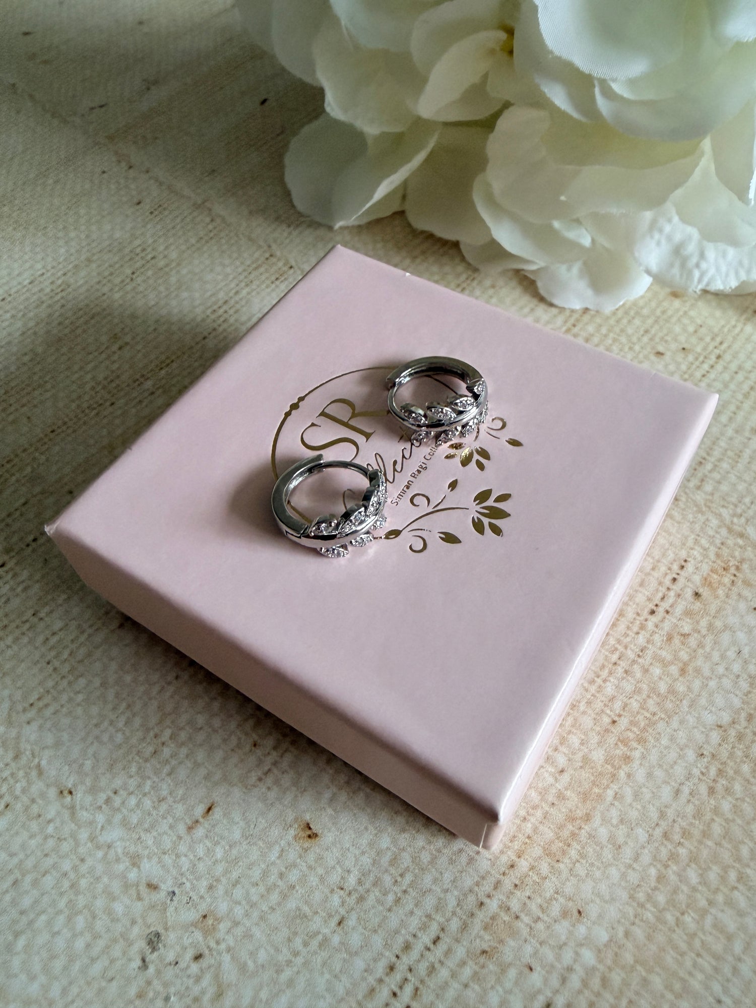 ⬥These cute silver huggie hoops feature a delicate leaf design, perfect for adding a subtle yet elegant touch to any outfit.