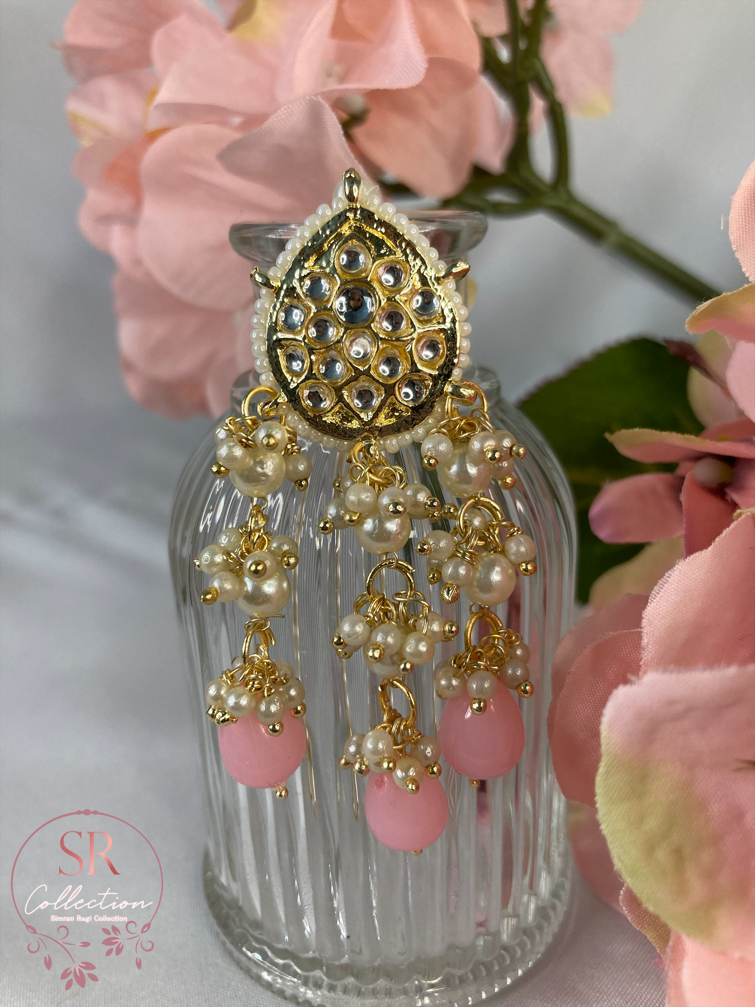 ⬥Ashvi is pear shaped gold plated tikka with kundan and a pop of pink.